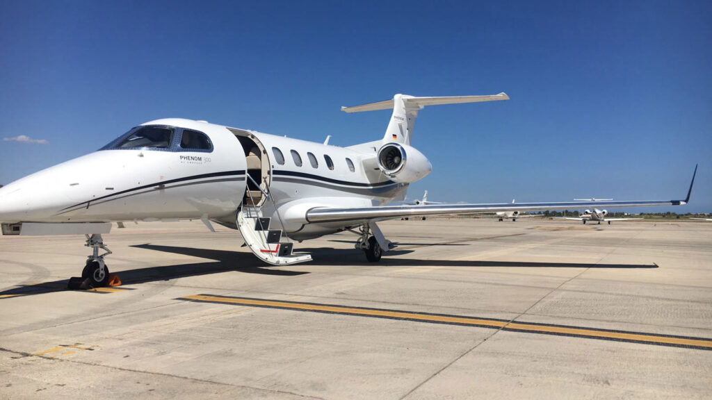The Embraer Phenom 300 offers spacious comfort for this class of aircraft. The aircraft can seat up to 7 passengers and has a range for up to 3 hrs 45 minutes.